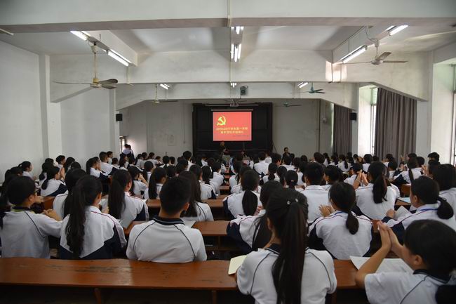 2016年11月2日中午,省财经学校青年党校2016-2017学年开班仪式在实训楼二楼阶梯教室顺利举行。学校党委委员、副校长周永生,党委委员、校长助理李满玉,党委委员、教务科科长金国英,党委办公室主任刘茂芳,学生科科长郑华山,艺术设计系主任刘映春及各系团总支书记,本学期党校学员共145人参加了开班仪式。仪式由团委副书记刘毅老师主持。