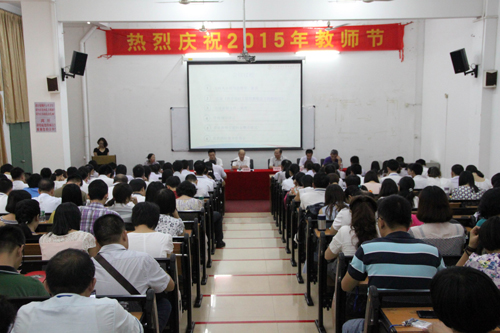 潘朝阳院长代表学院向一直以来关心和支持学院发展的上级领导、广大师生员工和离退休老干部致以诚挚的问候和祝愿,并介绍了我院近一年来取得的主要工作成绩。他指出,国以才立、校以才兴,教师是学校发展的第一资源,学校要坚持人才强校的战略,深入实施强师工程,切实把教师队伍建设作为最重要的基础性工作来抓,着力引才、育才、用才,加快构筑人才高地,不断激发教师的职业荣誉感和神圣的使命感。希望广大教师带头践行技工教育职业操守,自觉加强师德修养,提升综合素质,大力营造尊师重教的良好校风;认真履行立德树人,教书育人的职责,以练就学生“诚信知礼 感恩好学”的优良品质,实现把学生培养成“品德高、技能强、身体壮”出彩技能人才的目标;以人格魅力引导学生心灵,以技能造诣开启学生创业、创新之门,争当学生成人、成才、成长的引路人。