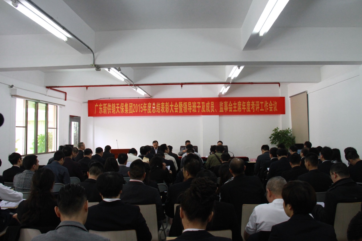 2016年1月8日下午,广东新供销天保集团在公司总部一楼会议室召开了2015年度总结表彰大会暨领导班子及成员、监事会主席年度考评会议。省社党组成员、理事会副主任陈容秋出席会议并作指导,省社相关处室领导及代表、受邀嘉宾以及公司全体员工参加本次会议。