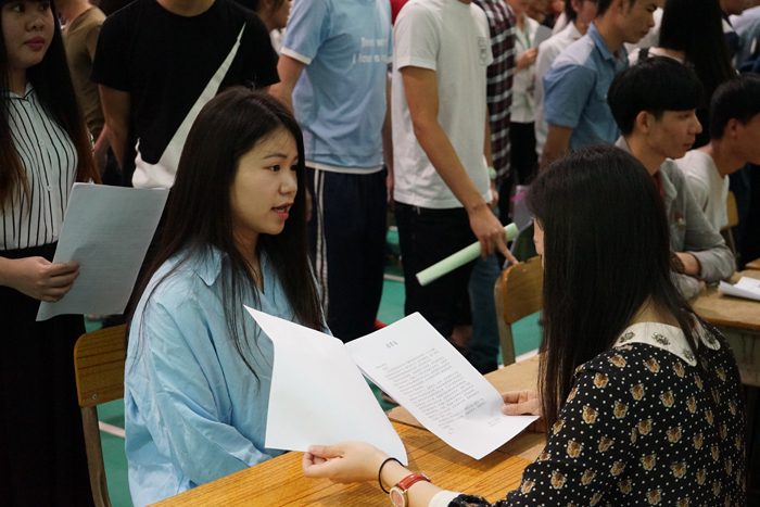 供需见面会除了企业在挑选目标人才,应聘者也在挑选目标企业。随机采访的多名学生中,大部分学生表示已有心仪的企业,并在应聘前认真了解了该企业的基本情况及准备应聘岗位的需求。设计高142班的邓存来同学表示:“通过各种渠道了解到心仪的企业发展前景好,在设计行业的优势非常明显,技术领先,因此吸引我去应聘它的岗位。”电商高145班的刘月同学手上拿着自己的小抄,上面密密麻麻写满了心仪企业的基本信息,“在面试前了解了很多企业的情况,最终选定一家企业作为重点面试企业。”