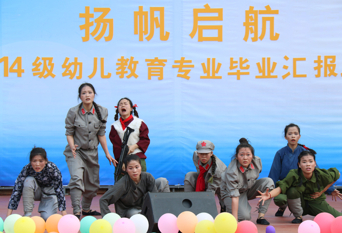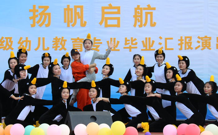 4月27日下午,省电子商务技师学院2014级幼儿教育专业学生毕业汇报演出在学校小舞台隆重举行。学院潘朝阳院长、朱冰副院长、施志君副院长、经管系曾思燕主任、刘秋玲主任以及深圳特雷新国际幼教集团黄至富总经理、经济管理系的全体师生观看了此次汇演。施志君副院长和曾思燕主任分别为演出致辞。