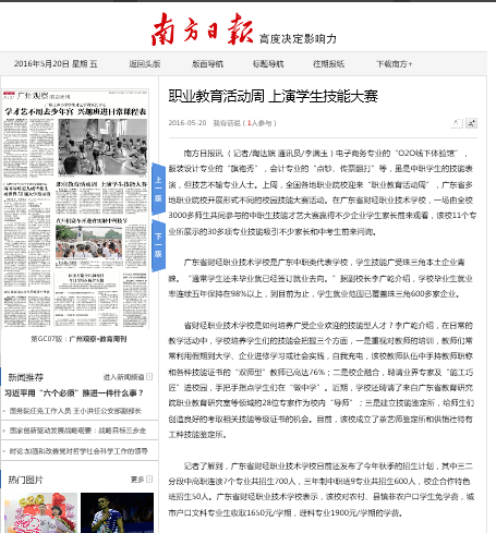 广东省财经职业技术学校是广东中职类代表学校,学生技能广受珠三角本土企业青睐。“通常学生还未毕业就已经签订就业去向。”据副校长李广乾介绍,学校毕业生就业率连续五年保持在98%以上,到目前为止,学生就业范围已覆盖珠三角600多家企业。