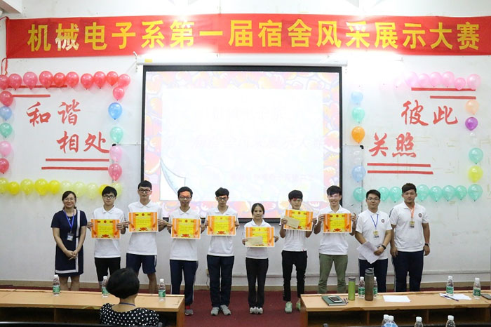在比赛过程中,各参赛宿舍从宿舍卫生情况、舍友情感、宿舍文化等内容进行展示和推介,其中有温情满满的对白,也有轻松幽默搞怪的调侃。赛后,机械电子系张小娃主任代表系部的老师向在座学生表达了会一直陪伴同学们成长、成人、成材的心情,祝愿老师们能快乐工作,教书育人;同学们能开心学习,快乐成长。生活指导部刘部长也表态,会充分考虑同学们提出的有关宿舍管理方面的建议,向领导转达这些建议,努力把宿舍管理工作做好,服务师生。