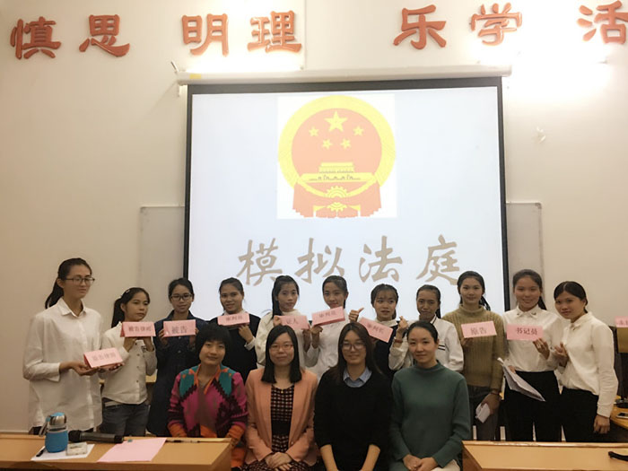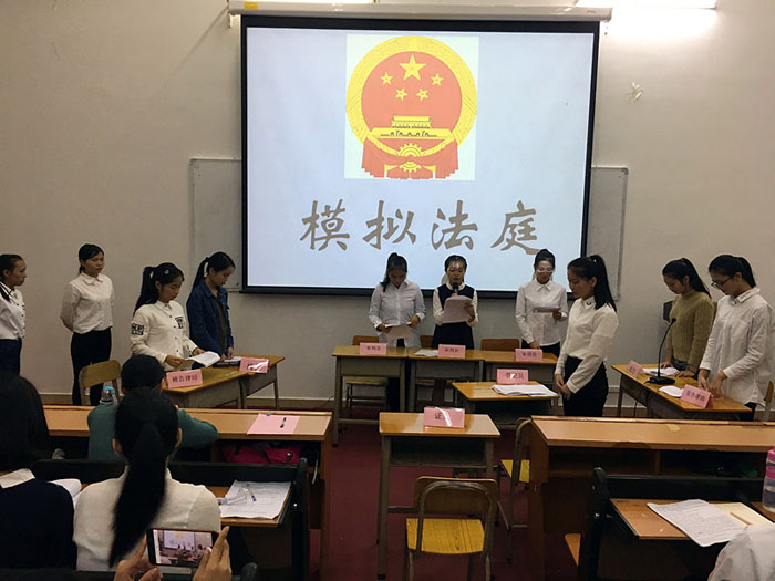 为了丰富校园文化生活,结合经济法课程理论教学与实践, 11月9日下午,省电子商务技师学院经济管理系在多媒体一课室举行“模拟法庭”教研活动。经济管理系曾思燕主任,崔素民、彭璐、林爱銮、郑伟香、洪小利等老师担任评委嘉宾,经济管理系会计专业16级班级组成若干参赛队伍参加活动。