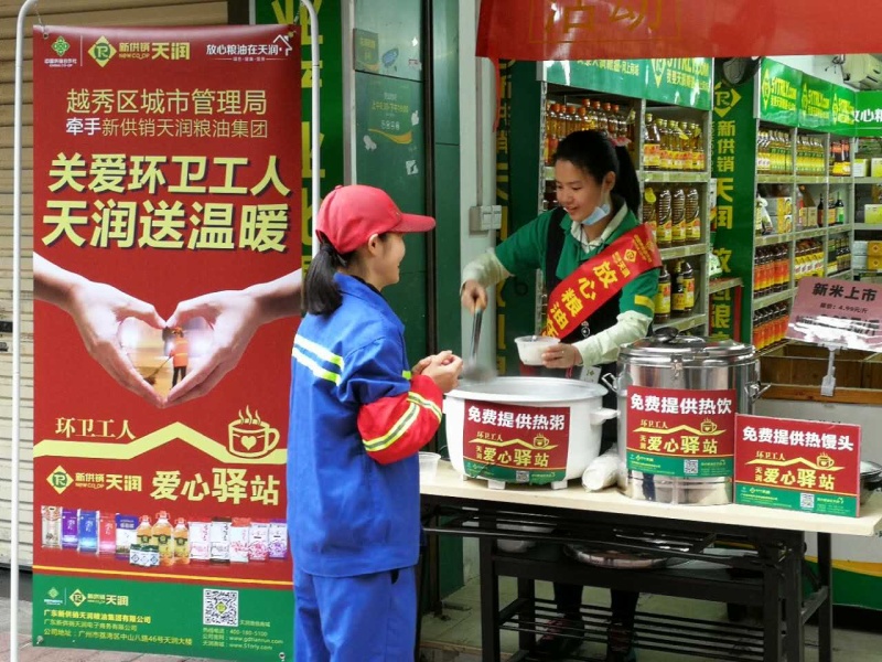 今年,天润粮油集团更将“送温暖”系列活动升级,携手越秀区城市管理局,为我们勤劳朴实的环卫工人提供热腾腾的免费早餐,奉上满满的爱,感恩他们年复一年、默默地为城市环境所付出的努力。正如天润人,不管是哪个岗位的员工, 为了能将放心粮油送入千万家庭,都在默默贡献自己的一份力量。