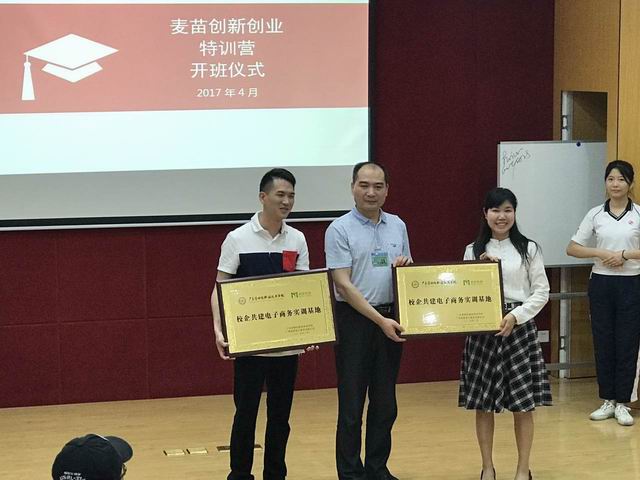 麦苗创新创业特训营开营仪式在4月11号下午举行,在开营仪式上,李广乾副校长代表学校致辞,并对此次校企合作模式和特训营班的学生寄予殷殷期望。广州麦苗电子商务公司运营总监郑荣辉先生代表企业作了发言,他指出了开办特训营的目的是为了让学生在就业前无缝对接企业,使学生对就业不再迷茫。广东顺德源本生活科技有限公司运营总监周信坤先生也发表了校企深度融合的意愿。最后在开班授牌以及企业战略合作伙伴授牌后结束了开班仪式。