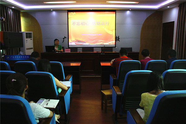本次专题学习会邀请了湛江市直属机关工委副书记吴璇瑛,为我校党员作“不忘初心,砥砺前行”专题讲座。吴璇瑛副书记说,习近平总书记在庆祝中国共产党成立95周年大会上指出,“我们党已经走过了95年的历程,但我们要永远保持建党时中国共产党人的奋斗精神,永远保持对人民的赤子之心。一切向前走,都不能忘记走过的路;走得再远、走到再光辉的未来,也不能忘记走过的过去,不能忘记为什么出发。面向未来,面对挑战,全党同志一定要不忘初心、继续前进。”
