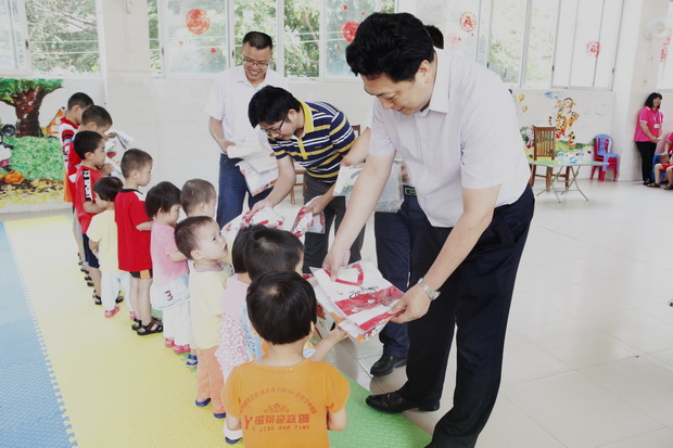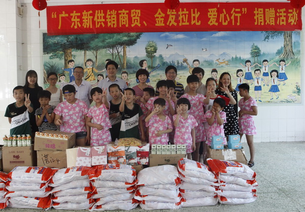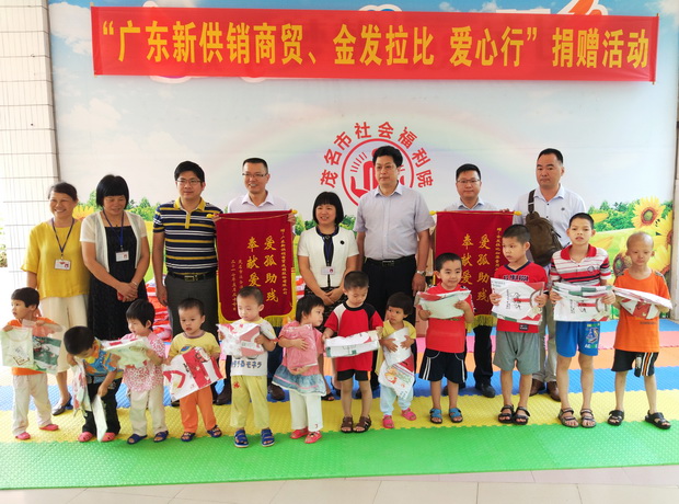 2017年5月27日 “六一”儿童节到来之际,新供销商贸公司牵手金发拉比母婴童用品有限公司一起举办了“广东新供销商贸&金发拉比·爱心行”公益慈善活动,新供销商贸公司董事长黄庆福、副总经理黄子睿、湛茂分公司总经理张宗颖、副总经理陈汉盛等一行10人分别到茂名市社会福利院、湛江市儿童福利院开展了此次慰问活动,给孩子们送上节日问候,并将价值6万多元的婴童服装及用品分别捐赠给了茂名市社会福利院和湛江市儿童福利院,希望孩子们在政府和社会各界的关爱下健康快乐的成长。
