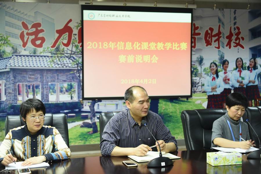4月2日中午,2018年广东省财经职业技术学校信息化课堂教学比赛赛前说明会在办公楼四楼会议室召开。副校长李广乾、教务科、督导室、各系的主要负责人,及所有参赛选手参加了会议。会上,教务科金国英科长对本次信息化课堂教学比赛的目的、特点、要求及评委构成、评分标准等内容,为参赛选手们作了详细的说明。