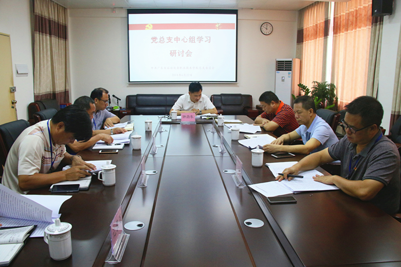 6月22日上午,我校在学校第一会议室组织召开党总支中心组学习研讨会,传达学习中国共产党广东省第十二届委员会第四次全体会议和全省加强基层党组织建设工作会议精神,对全面彻底肃清李嘉、万庆良流毒影响进行了深入研讨。党总支书记钟劲东同志主持会议,党总支副书记、常务副校长全国东以及全体党总支委员参加会议,校长李明龙列席会议。