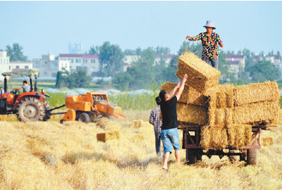 图为禹会区马城镇孝仪村,小麦秸秆打捆后装车。 刘晨 摄