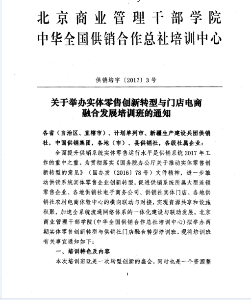 关于举办实体零售创新转型与门店电商融合发展培训班的通知