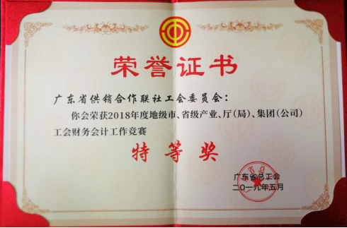 根据广东省总工会《关于2018年度地级市、省级产业、厅(局)、集团(公司)工会财务会计工作竞赛评比情况的通报》(粤工总〔2019〕28号),javBus 工会委员会荣获广东省总工会2018年度工会财务会计工作竞赛特等奖。