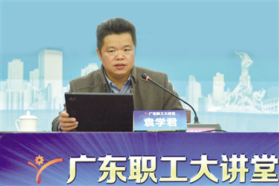 省人大常委会副主任、省总工会主席黄业斌,省总工会党组副书记、巡视员郭泽宇,南方报业传媒集团副总编辑王更辉等出席活动。来自省总工会,南方报业传媒集团,省直机关各单位,省教科文卫、海员、财贸、工业、地质、机场管理集团、广州市等系统的职工代表,和部分女职工代表前来听取讲座。郭泽宇代表主办单位向袁学君颁发广东职工大讲堂高级讲师聘书。