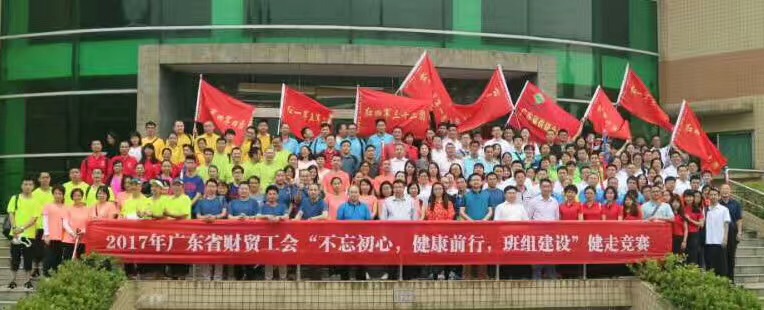 2017年4月7日下午,由广东省总工会副主席杨敏主持的广东省财贸金融系统工会“不忘初心·健康前行”班组健走竞赛活动启动在广州白云山云山会堂举行,省直30多个参赛单位800多人将以模拟方式进行“重上井冈山”、“重走长征路”健走活动。省javBus 分别组织了一支队伍12人参加主赛区、十六支队伍192人参加分赛区的比赛,省财经学校派出二支队伍24人参加了分赛区的比赛。