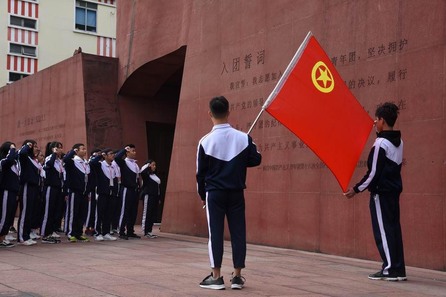 在本次的参观中,老师带领团干们共同到团一大广场、中华全国总工会旧址与中共三大旧址参观学习。在团一大广场中团干们进行了合影留念,并面向雕刻在石壁上的入团宣誓词,庄严地举起了右手,握紧了拳头再一次进行了宣誓。此举体现了作为团员坚毅的决心,更是对中国共青团的一颗敬畏之心。