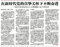 广大职工以习近平总书记谆谆教导作为奋斗拼搏的动力,积极参加“当好主人翁、建功新时代”等主题劳动和技能竞赛,在全面建成小康社会伟大征程上建功立业。