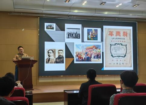 随后,马克思主义学院房小捷老师以《开天辟地的大事——五四运动和中国共产党的成立》为题,讲授了专题党课。他从“如何坚守入党初心 ”为切入点引发同学们的思考,他运用生动的语言、丰富的史料、鲜活的事例,详细讲解了辛亥革命后的文化危机、新文化运动、 “五四 ”与新文化运动的裂变和中国共产党的诞生等四方面的历史脉络,帮助同学们深刻认识了马克思主义的传播与新文化运动的发展历程,让同学们了解了中国共产党成立的深刻历史背景,教育广大学生要树立信心,面对困难挫折撑得住、关键时刻顶得住、风险挑战扛得住,争做有理想、敢担当、能吃苦、肯奋斗的新时代好青年。