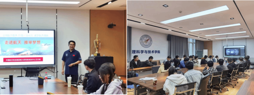 为进一步弘扬工匠精神,传承和发扬科学家精神,激发广大师生的爱国热情。4月29日下午,学院开展“弘扬工匠精神、奋斗成就梦想”主题活动。本次活动特别邀请了中国航天科技集团第六研究院宣讲师王文斌进行授课。王文斌以《走进航天、推举梦想》为题,结合中国航天事业的发展、航天液体动力的发展、航天精神的共性特征和时代内涵等内容,为大家做了一场精彩生动的专题报告。在报告中,通过丰富多彩的实例,他先后讲解了中国航天的发展历程,诠释了“载人航天精神、探月精神、新时代北斗精神”等谱系精神的深刻内涵,将深奥神秘的航天科学知识讲得生动具体,为师生们上了一堂别样的航天科普课。他鼓励大家,作为新时代青年,要积极学习老一辈航天人的拼搏精神,要立大志、明大德、成大才、担大任,脚踏实地、练好本领,把坚定的理想信念、高昂的爱国热情、强烈的责任担当、良好的精神风貌写入了浩瀚星空,赓续传承老一辈航天精神,为祖国航天科技事业发展献出青年力量。