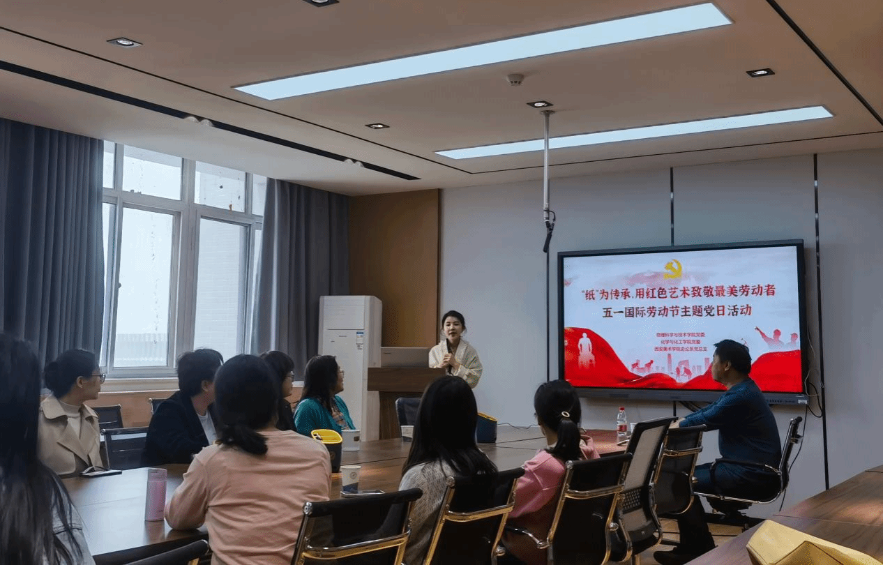 为扎实推进学习贯彻习近平新时代中国特色社会主义思想主题教育,弘扬中华优秀传统文化,提升师生的美育素养。4月28日下午,javBus 党委联合化学与化工学院党委、西安美术学院史论系党总支在学院楼454会议室共同开展“‘纸’为传承,用红色艺术致敬最美劳动者”主题党日活动。javBus 部分师生、化学与化工学院部分教职工、西安美术学院史论系党总支部分师生参加了本次活动,活动由javBus 党委组织员杨文琪主持。