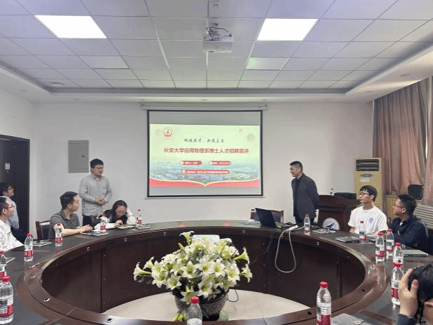 (原理学院物理系)求学的难忘时光,对母校的悉心培养表达了诚挚感谢。随后,他详细介绍了长安大学在学科建设、科研平台等方面的优势以及应用物理系的师资力量和发展前景。2021届院友邹鹏飞和2025届院友梁宏圣两位青年教师结合自身经历,从科研启动经费和人才计划支持两个方面分享了长安大学为青年人才提供的良好发展机遇和优厚待遇。现场问答环节,同学们积极提问,就岗位发展、科研合作等深入交流。