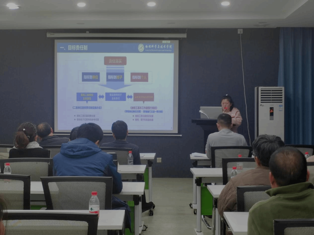 办公室副主任马晓娜解读了学校关于新一轮聘期教师基本工作量的相关政策,重点介绍了整体工作考虑、基本工作量解读以及考核和绩效分配等内容。