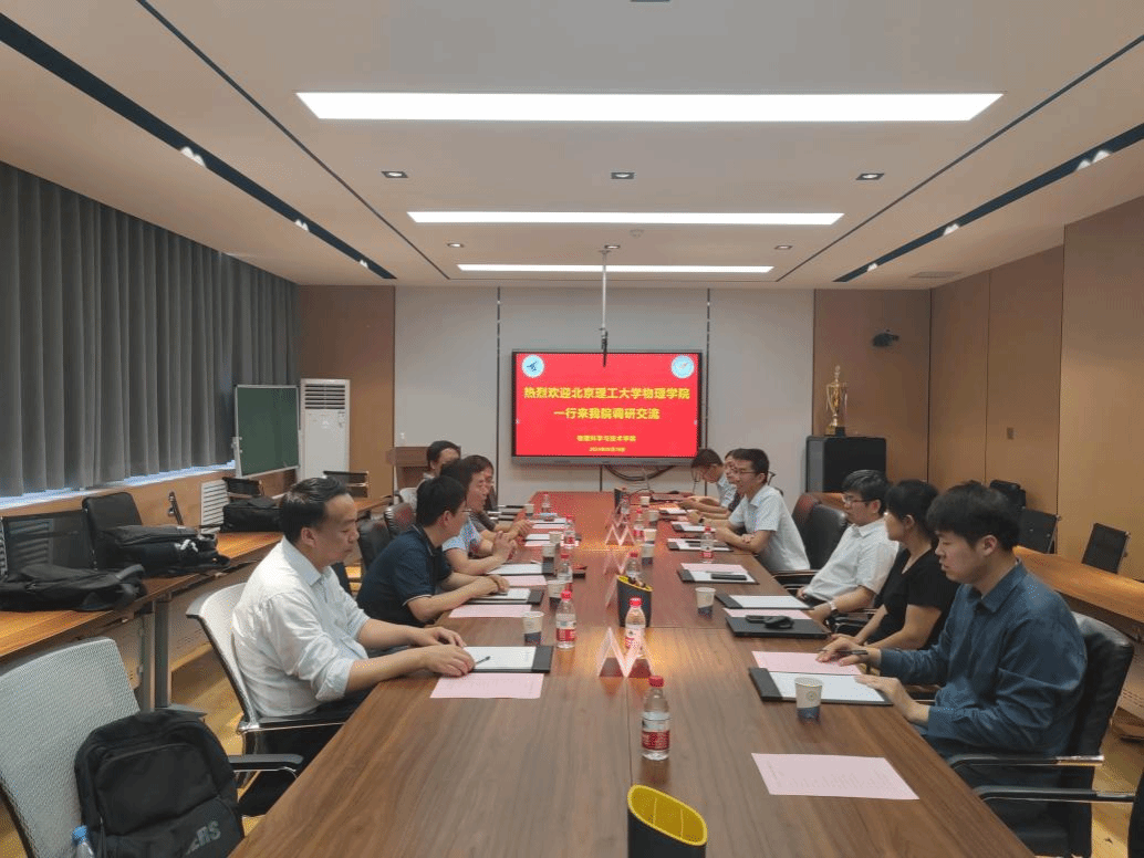 调研交流。学院党委书记晁小荣、副院长宋坤、党支部书记毛珊、物理实验教学中心主任杨超舜、物理学科竞赛创新实践基地负责人翟世龙、近代物理实验课程教师张煜浦、本科教学秘书李转、付聪慧参加了会议。
