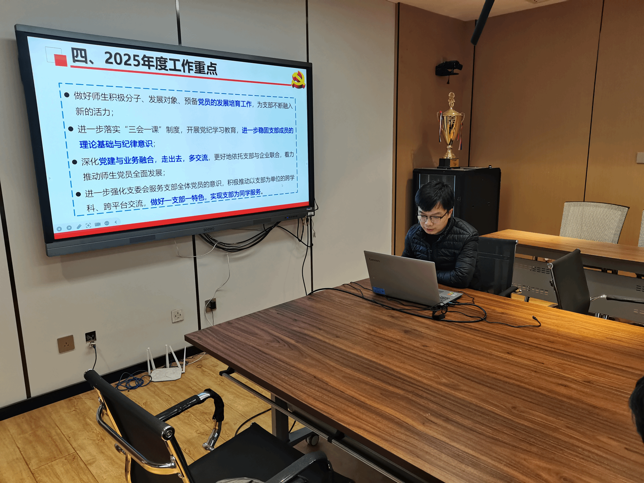 最后,晁小荣对各党支部书记的述职情况进行了点评,肯定了他们在过去一年取得的成绩与亮点成效,同时对各支部需加强改进的党建工作内容提出了要求,并提出四点希望:一是加强理论学习,更有创新;二是发挥党建引领,更有作为;三是打造党建品牌,更有亮点;四是党建数智赋能,更有保障。