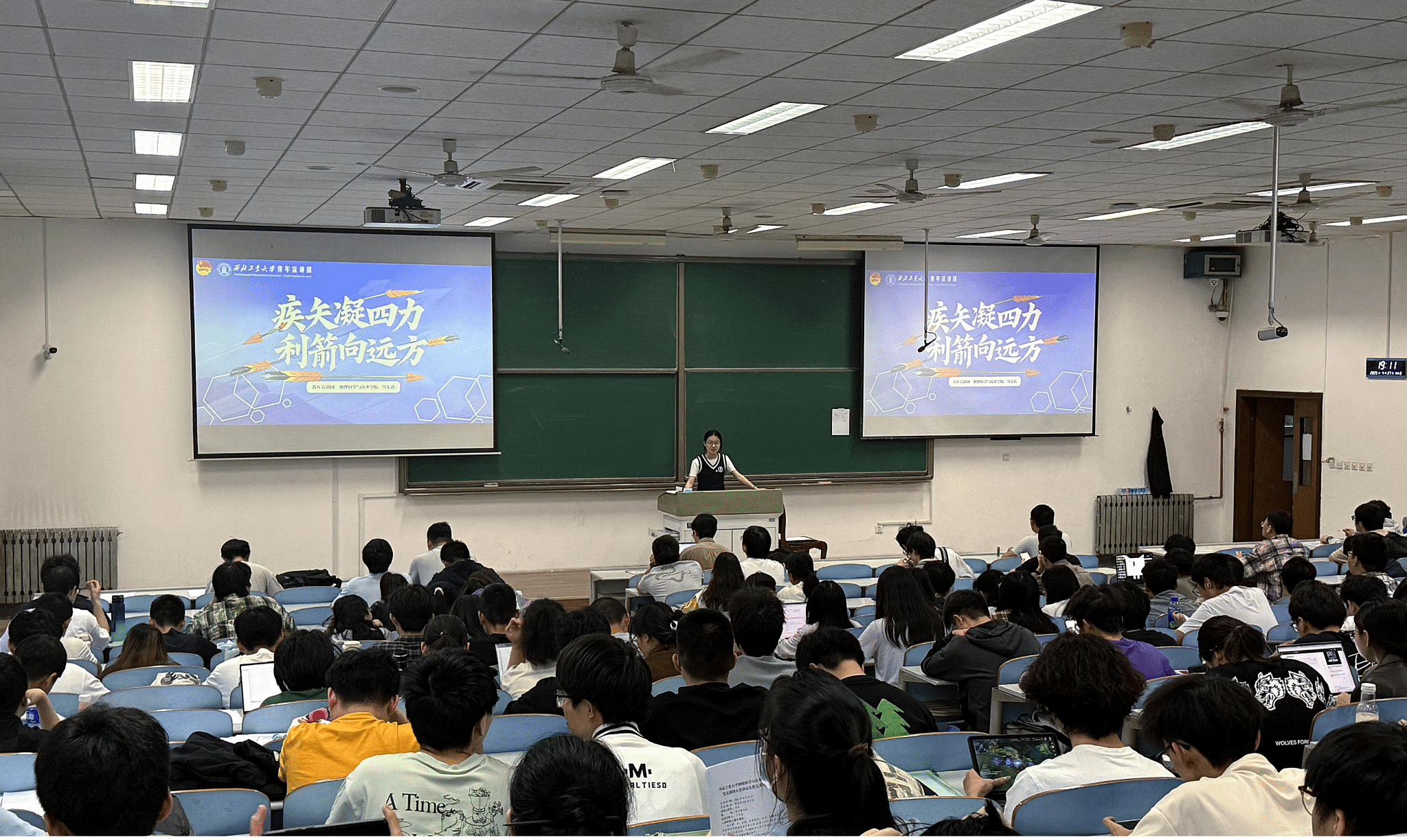 育人理念与使命担当的精彩宣讲。马玉洁以“弓箭四部分”为喻,系统阐述了学校以“四力”为核心的人才培养体系与国防科技贡献。她详细解读了西工大为党育人、为国育才的原动力,攻坚克难、勇攀高峰的战斗力,勤学苦练、精进不休的续航力,以及恪尽职守、忘我奉献的向心力。她鼓励青年学生用实际行动回答“强国建设、工大何为”的时代命题,为中国式现代化挺膺担当。