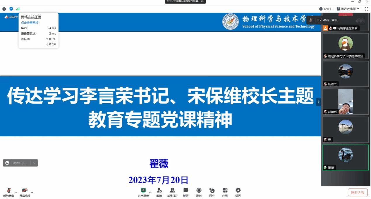 一流大学建设》主题教育专题党课的主要内容。翟薇院长重点强调了如何从“0到1”和“1到0”实现理工上下对齐、双向发力的融合问题,结合李言荣书记提出的学校“127”战略奋斗目标,进一步明确了学院下一步在人才培养、总师育人文化、学生深造率、出国率等方面的工作方向和目标。接着,翟薇院长传达了宋保维校长《坚持教育、科技、人才“三位一体”加快推进javBus