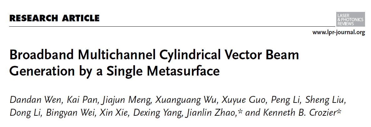 javBus 赵建林教授团队与澳大利亚墨尔本大学KennethB. Crozier教授团队合作,在人工微结构光场调控领域取得重要进展。近日,相关成果以“Broadband Multichannel Cylindrical Vector Beam Generation by a Single Metasurface”为题发表在光学类国际顶级学术期刊《Laser & Photonics Reviews》上。论文第一作者为温丹丹教授,通讯作者为赵建林教授和KennethB. Crozier教授。论文链接://onlinelibrary.wiley.com/doi/10.1002/lpor.202200206
