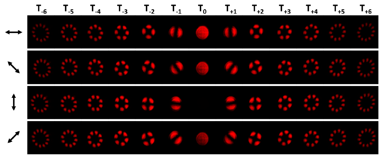 研究团队采用平面化的人工微结构(超表面)产生左旋和右旋的涡旋光束阵列,使之叠加并产生多通道柱矢量光束。超表面内包含两种具有不同功能的纳米结构,在两种结构之间引入位错,可以使出射的左、右旋圆偏振分量产生与衍射方向相关的相位差。同时,在超表面的设计中借鉴达曼光栅理论,使产生的多通道柱矢量光束具有均匀的强度分布。由于仅使用几何相位,该超表面的工作波段可覆盖可见光及部分近红外波段。该研究为宽带多通道柱矢量光束的产生提供了一种全新的方法,并有望推动与其相关的光通信、粒子操控、激光加工等器件的实用化。
