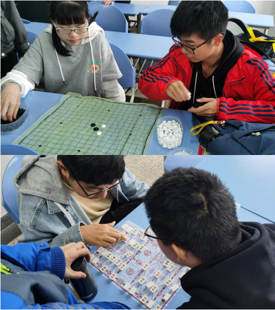 比赛共设五子棋、围棋、中国象棋、国际象棋、中国跳棋、军棋、三国杀、狼人杀等八个项目,共有35位同学报名参赛。参赛选手们通过线上线下相结合的方式进行比赛,聚精会神地沉浸在赛局中。暂时没有比赛的同学则在一旁安静地观看,或准备其他项目。