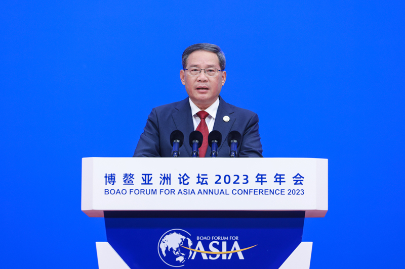 3月30日上午,国务院总理李强在海南博鳌出席博鳌亚洲论坛2023年年会开幕式,并发表题为《以人类命运共同体理念为引领 为世界和平与发展注入更多确定性》的主旨演讲。新华社记者 刘彬 摄