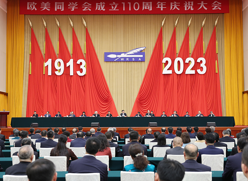 中共中央政治局委员、中央统战部部长石泰峰在会上宣读了习近平的贺信。全国人大常委会副委员长、欧美同学会会长丁仲礼作报告。