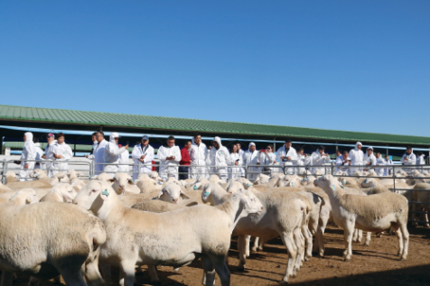 与会专家参观天津奥群牧业有限公司的种羊群。