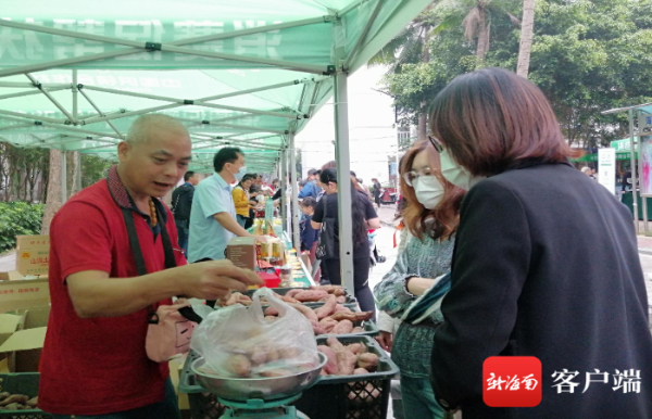 10元3斤的儋州地瓜、4元1斤的圣女果、1.5元1斤的泡椒……3月24日下午,消费助农大集市高校专场活动走进海南师范大学,时令生鲜在集市上亮相,其中不仅有扶贫产品,也有各村镇合作社带来的集体产业农产品。