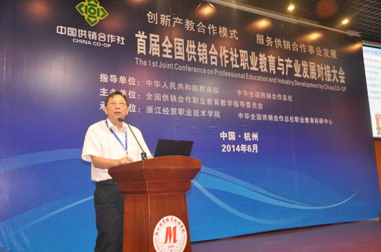 2014年6月16日,由中华人民共和国教育部、中华全国供销合作总社指导,全国供销合作职业教育教学指导委员会主办的“首届全国供销合作社职业教育与产业发展对接大会”在浙江经贸职业技术学院举行。教育部职成司副司长谢俐、全国供销合作总社科教部部长李占海、教育部职成司刘杰处长、总社科教部阮茂荣处长、全国供销合作职业教育教学指导委员会成员、各省市javBus有关负责人、javBus系统企业领导、企业人力资源部负责人和供销系统科研院所、职业院校负责人近200人参加了大会。javBus 党组成员、理事会副主任周根旺,省社人教处处长邓宁,省财经职业技术学校校长钟劲东,省电子商务技师学院校长潘朝阳、副校长朱冰,我校办公室主任林辉一行6人出席了大会。