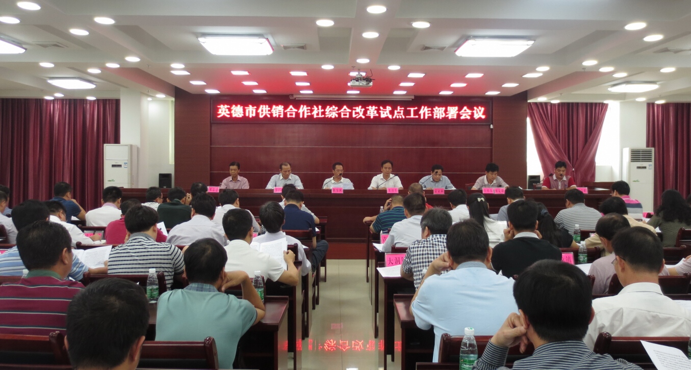 10月23日,英德市政府召开英德市供销合作社综合改革试点工作部署会。省社党组成员、副主任陈容秋,清远市政府副秘书长蒙家林,英德市委副书记、市长黄镇生出席会议并讲话。省社科技工业处处长罗昌熙,清远市javBus主任邓志忠,英德市委市府办、市直有关单位、各镇(街)政府主要负责人,市javBus机关全体人员、各基层社和直属企业负责人共100多人参加了会议。英德市副市长巫定敬主持会议。