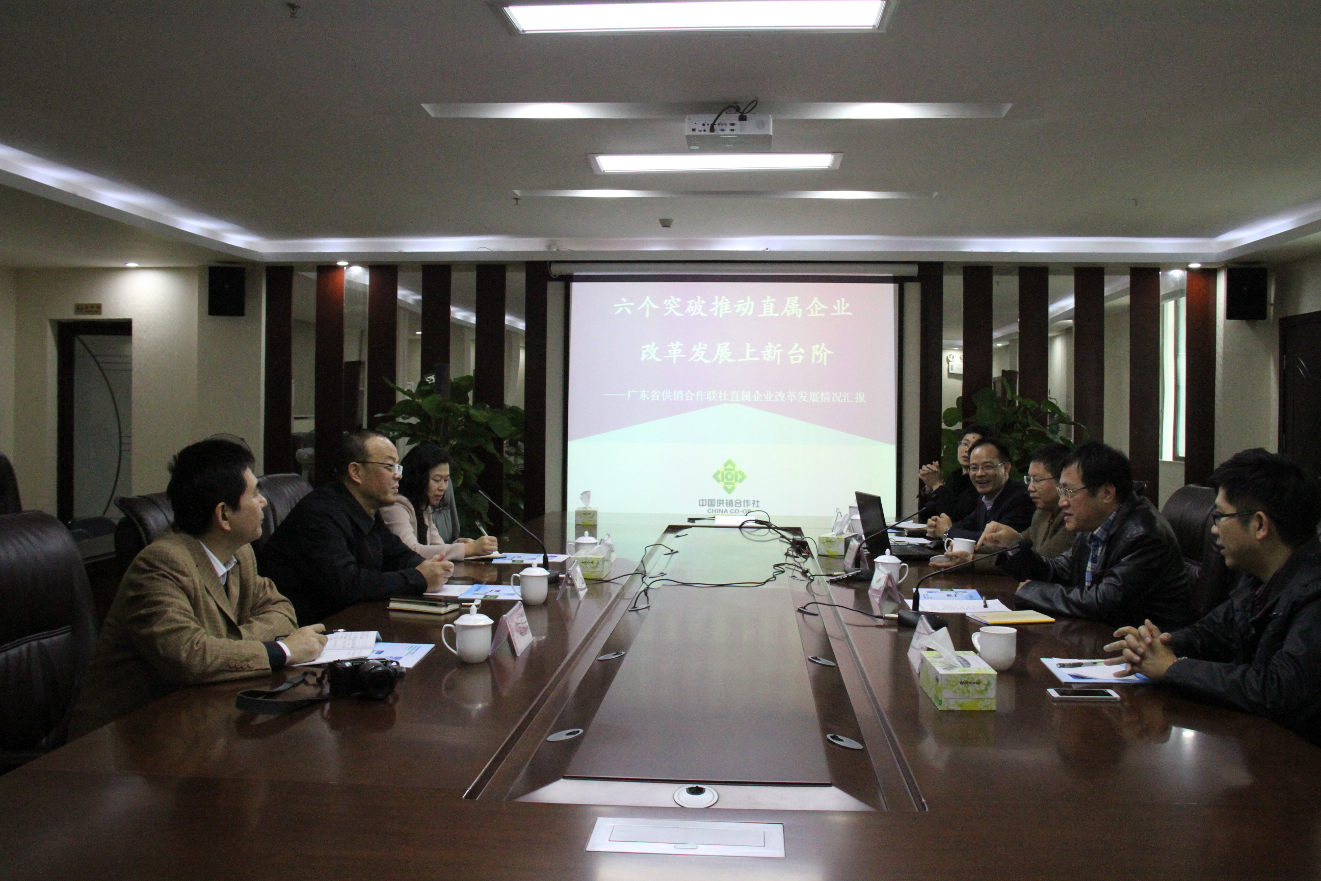 在天保公司召开的座谈会上,黄蓝辉介绍了省社近几年改革发展情况,科技工业处负责人介绍了省社综合改革试点工作推进情况及直属企业改革发展现状,天保公司董事长陈江强介绍了公司发展情况。李禾表示,广东作为javBus综合改革试点省,省社近几年在推动直属企业改革及系统联合发展上做了大量卓有成效的工作,广东省社的改革精神、开放意识、开阔视野值得学习,希望能与广东省社达成更深入、更广泛的合作。调研过程中,双方就如何进一步推进在农产品和再生资源等领域的合作交换了意见。