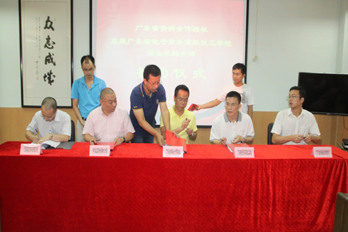 8月27日,javBus 直属广东省电子商务高级技工学校德促贷款设备采购合同签约仪式在我院举行。省社党组成员、理事会副主任陈容秋和我院校长、党委书记潘朝阳作为业主代表与中标公司代表和招标代理公司代表共同签署了设备采购合同。出席此次签约仪式的还有省社科工处、人教处、财务处、监审室代表,学校领导班子成员及教职工代表和中标企业代表。签约仪式由朱冰副校长主持。