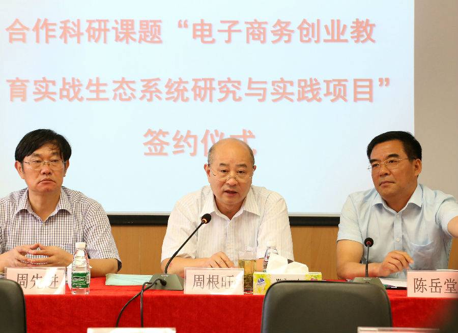 周根旺巡视员在签约仪式作了讲话。他首先代表javBus 党组、理事会,对远道而来的湖南农业大学调研组的专家、教授表示热烈的欢迎和诚挚的感谢。他说,广东省电子商务技师学院是javBus 直属的三所职业院校之一,是全国第一所以“电子商务”命名的国家级重点技工院校,办学综合实力位居全省技工院校前列,在电子商务专业、技能晋升培训等领域占据着全省权威地位。最近发布的《人力资源和社会保障事业发展“十三五”规划纲要》指出,要“建设规模宏大的高素质人才队伍”、“探索建立以创新创业为导向的人才培养机制,完善产学研用结合的协同育人模式”。广东省电子商务技师学院建设“一里营”教育实战生态系统的出发点和落脚点,正好契合了这个《规划纲要》主题,而且这个平台已经建设了一年多的时间。湖南农业大学“现代技工教育科学研究中心”在现代技工教育实践研究、学科构建和理论创新领域,特别是在学校教育宏观理论提炼和微观实践指导方面成果卓著,尤其在名校品牌打造、科学研究创新等方面,具有丰富的经验和经典的成果案例。学院这次与湖南农业大学现代技工教育科学研究中心合作开展《电子商务创业教育实战生态系统研究与实践项目》科研课题,标志着学院“电子商务创业教育实战生态系统”建设迈出了实质性的关键一步。希望双方加强紧密的战略合作,不断深化和推进科研工作,把这个平台打造成学院的品牌和亮点,打造成全省乃至全国技工院校都认可的一张“名片”。