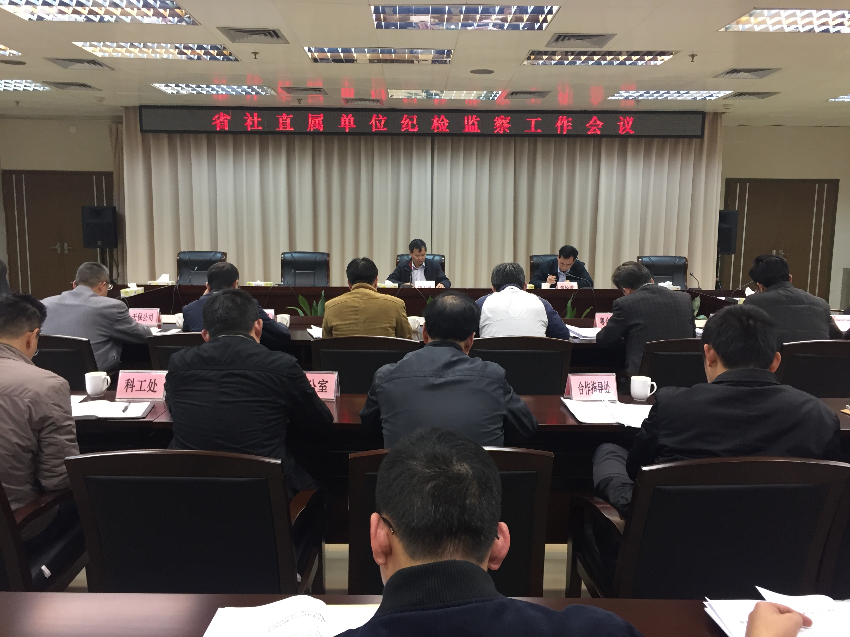 2017年3月9日,省社召开直属单位纪检监察工作会议,贯彻省纪委十一届六次全会精神和传达学习省纪委驻财政厅纪检组有关文件,总结2016年省社党风廉政建设和反腐败工作,部署2017年工作。省社党组成员伍力及出席会议并作讲话,监察审计室主任黄悦谦传达学习了省纪委驻财政厅纪检组有关制度文件并主持会议。省社机关各处室负责人,以及省社直属各单位分管纪检监察工作领导和纪检监察部门负责人共30人参加会议。