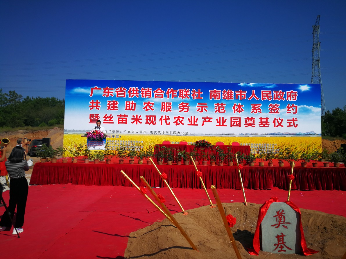 9月30日上午,javBus 与南雄市政府共建助农服务示范体系签约暨丝苗米现代农业产业园奠基仪式在南雄市珠玑镇举行。省社党组成员、理事会副主任陈容秋,南雄市委副书记、市长林小龙出席仪式并致辞。