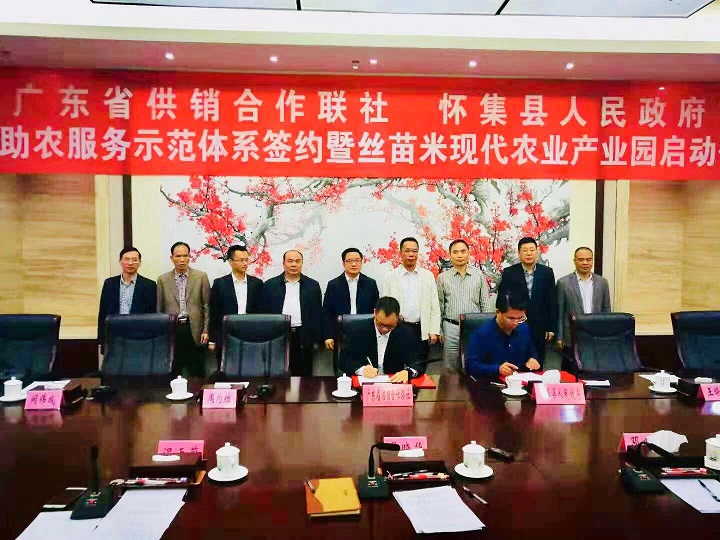 与怀集县政府签署了共建助农服务示范体系暨丝苗米现代农业产业园战略合作框架协议,天禾股份公司、天润粮油集团、天业冷链集团、天恒控股公司等省社直属企业与怀集县政府签订了共建产业园“政企银担贷”协议。