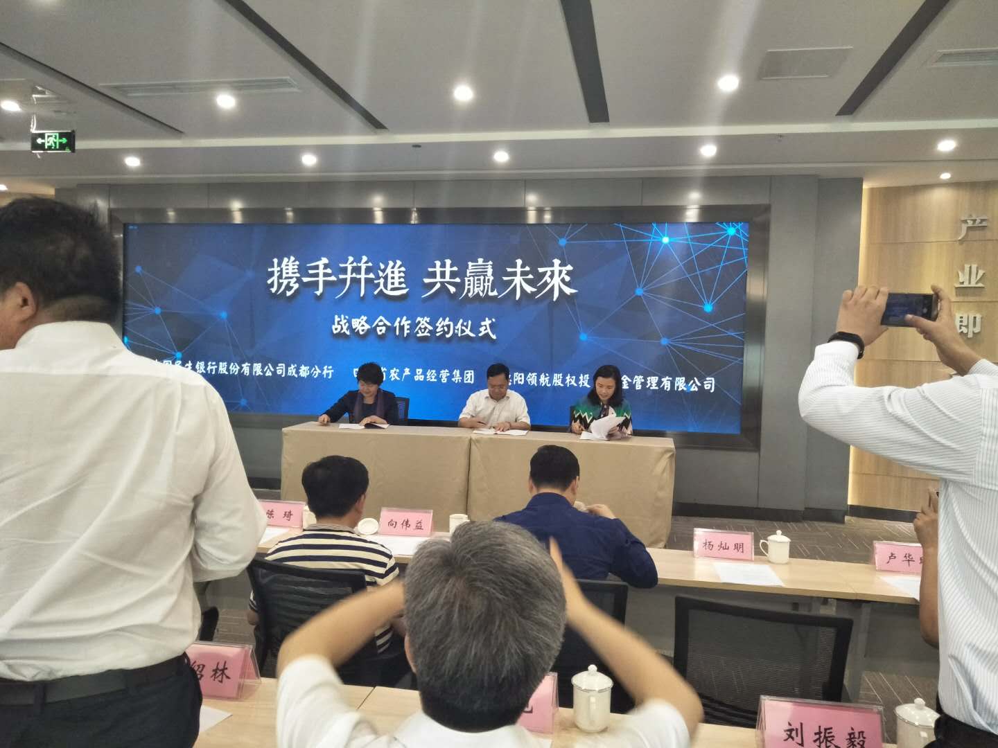 四川农产品经营集团与民生银行成都分行、德阳领航股权投资基金管理有限公司三方战略合作协议的签署,将实现三方共赢、互惠、协调发展,对推动全省农产品产业扶贫,促进农民增收致富奔小康发挥重要的作用。