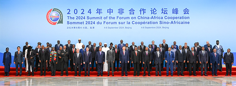 习近平同出席峰会的51位非洲国家元首、政府首脑以及2位总统代表,非盟委员会主席和联合国秘书长集体合影。