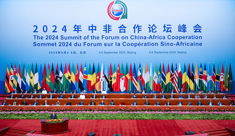 9月5日上午,国家主席习近平在北京人民大会堂出席中非合作论坛北京峰会开幕式并发表题为《携手推进现代化,共筑命运共同体》的主旨讲话。新华社记者 鞠鹏 摄