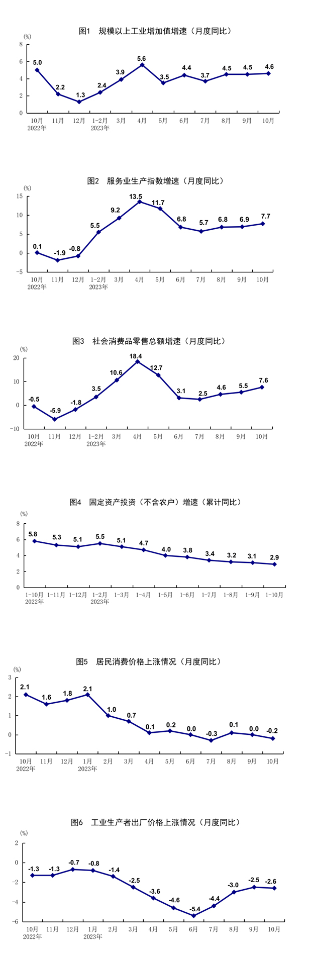 总的来看,10月份,国民经济持续恢复向好,主要指标持续改善,经济运行总体平稳。但也要看到,外部不稳定不确定因素依然较多,国内需求仍显不足,经济回升向好基础仍需巩固。下阶段,要坚持以习近平新时代中国特色社会主义思想为指导,坚持稳中求进工作总基调,扎实推动高质量发展,精准有效实施宏观调控,着力扩大内需、提振信心、防范风险,不断推动经济运行持续好转、内生动力持续增强、社会预期持续改善、风险隐患持续化解,促进经济实现质的有效提升和量的合理增长。