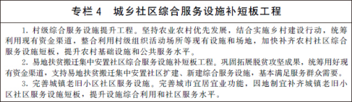 聚焦幼有所育、学有所教、病有所医、老有所养、弱有所扶和文体服务有保障,推动基本公共服务资源向村(社区)下沉。重点强化社区养老、托育、助残服务供给,做好对困难群体和特殊人群关爱照护,推动社区与居家养老服务协同发展。着力提升基层卫生、医疗保障服务能力,做好传染病、慢性病防控和儿童保健等工作,推进健康社区和村(居)民委员会下属公共卫生委员会建设。加强基层公共就业服务,在有条件的村(社区)设立就业创业空间,重点为村(社区)居民中的失业人员、就业困难人员、高校毕业生、退役军人、农村转移劳动力、残疾人等群体提供服务。大力发展社区教育,助力构建终身学习体系。扩大文化、体育、科普等公共服务供给。加强婚姻家庭文化服务。适应农村经济社会发展,增加行政村和较大自然村基本公共服务供给,提升邮政、金融、电信、供销、广播电视等公共事业服务水平。重点加强脱贫村和易地扶贫搬迁集中安置社区的教育、卫生、就业、社保、养老、社会救助、未成年人保护、环境保护等公共服务资源配置。